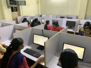 The College has four well-equipped and well-managed Computer Laboratories. Approximately 130 state-of-the-art machines from IBM, HCL & HP and LCD Projectors and an interactive board are available along with all necessary peripherals. The machines and programmes are continuously upgraded to ensure the market relevance of acquired skills.